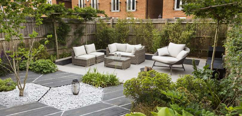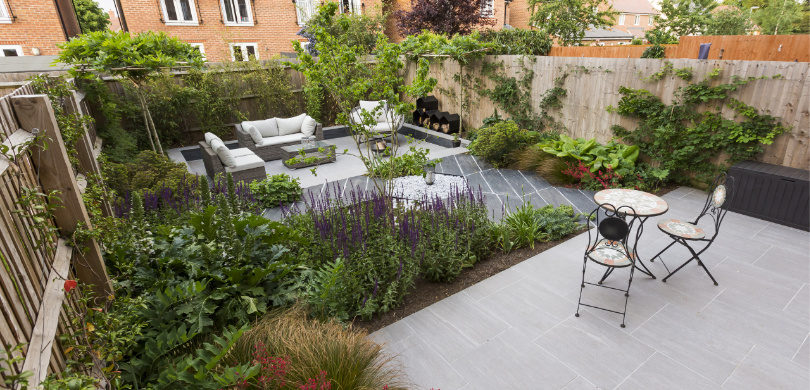 This new-build compact garden was a blank canvas overlooked by surrounding three-storey town houses. The clients were keen to create a contemporary design with changes in levels and two separate seating areas. They were also happy to get rid of the lawn to achieve their goals for the project.